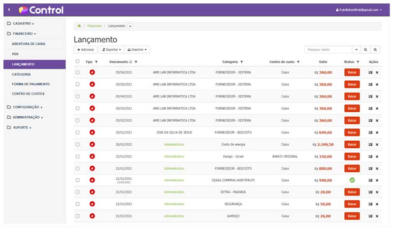 O Control ajuda você a controlar e organizar as finanças de sua empresa.
